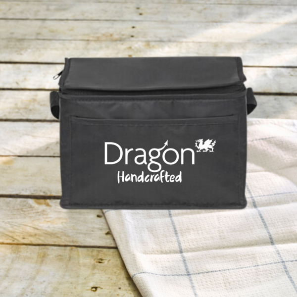 Keep your Dragon favourites perfectly chilled with our stylish cool bag, adorned with the Dragon logo. Created for lovers of great cheese for al fresco dining (or even the kids school lunches). With a front slip pocket, insulated inner material and carry strap. Food Safe certified. (H) 15 x (W) 23 x (D) 14.5cm